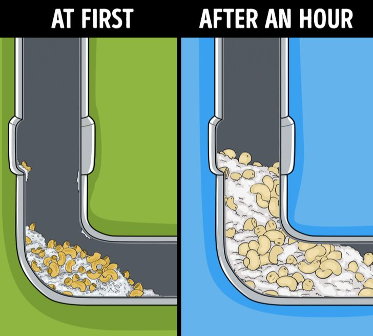 When cooked, pasta and rice take a long time to dissolve in water. If they go down the drain, they can stick together and form a thick mass that clogs pipes. This risk increases when combined with grease and other food scraps, leading to plumbing problems that may need professional repairs.