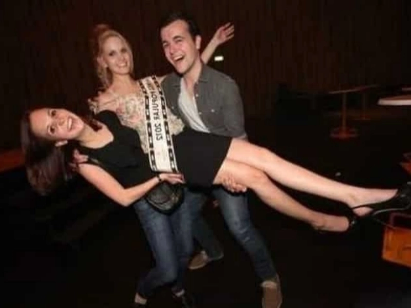 Are there extra arms or legs here? The man carries the woman in black, while the woman in the middle poses.