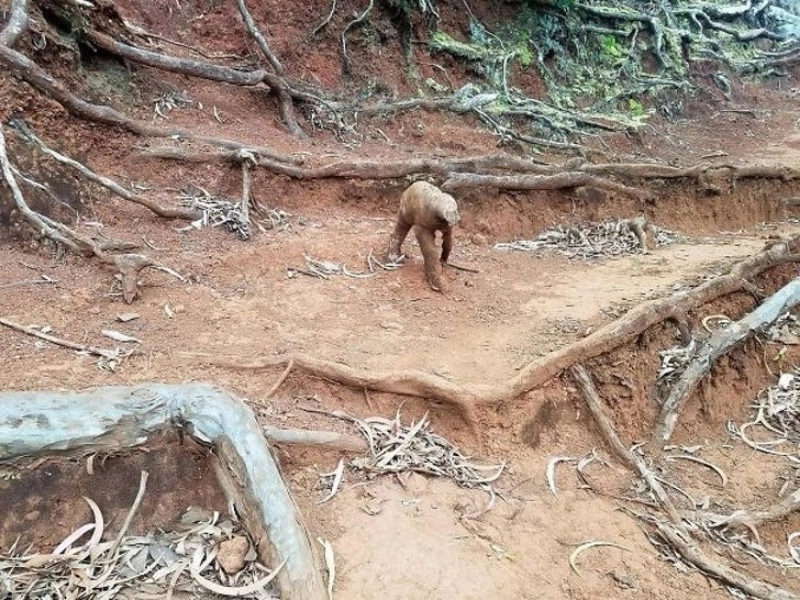 Is this an aerial shot of an animal? No—it’s the exposed root of a tree, resembling an elephant or dinosaur.