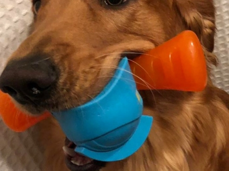 "My dog finally did it! At 11 months old, he managed to hold two toys in his mouth at the same time! I was so proud!"