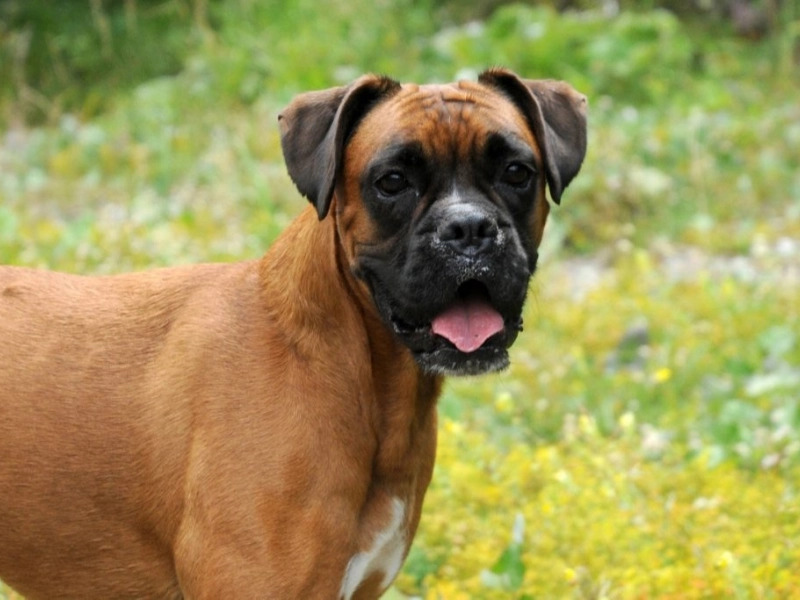 Boxers are medium-to-large German dogs whose physique hides a friendly nature. Easy to train, calm, and intelligent, they are energetic and devoted, good with kids and other dogs. Allboxerinfo.com notes they are strong hunters with powerful jaws. Their broad muzzle and open nostrils aid breathing while holding prey. Without training, they may aggressively chase small animals.