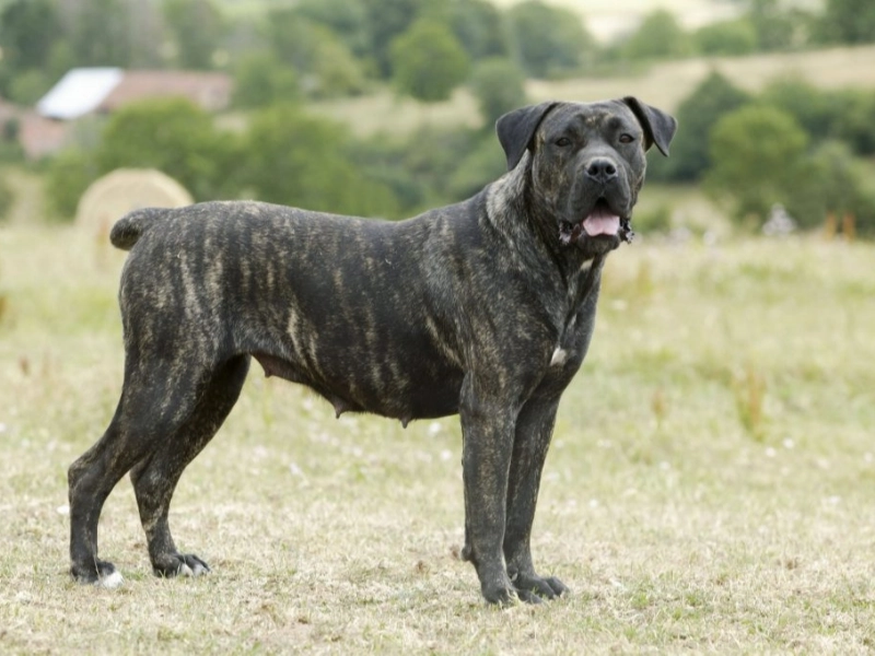 The Presa Canario, or Canary Mastiff, once herded livestock and deterred predators. Today, training and socialization are essential. Known to be aggressive when challenged, they strike hard with large feet and powerful bodies. Often over 100 pounds with a 540 psi bite force, they require a skilled trainer before entering a home.