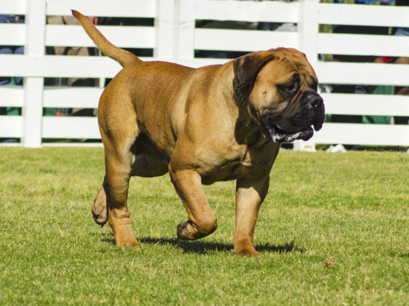 A bulldog–mastiff cross, the Bullmastiff reaches 27 inches tall and up to 100 pounds. In the 19th century, they deterred poachers and served as defenders. They may bond closely with owners but can become dangerous without socialization or training.
