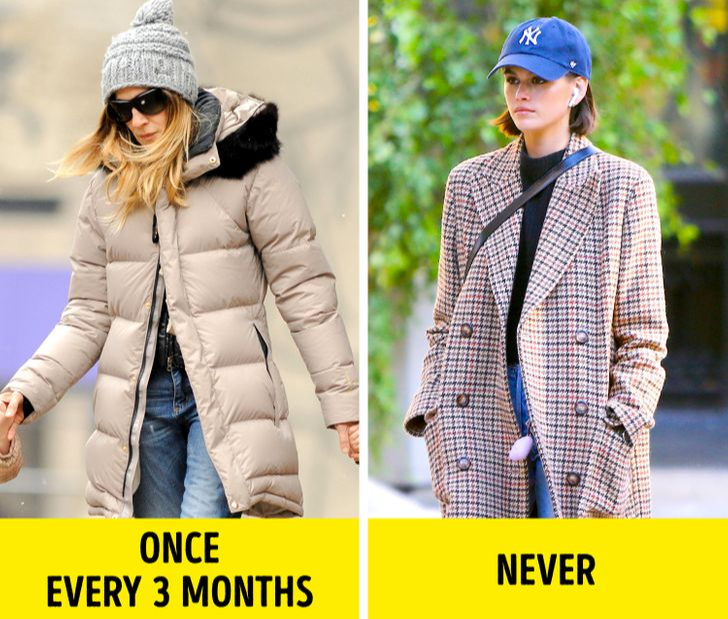 Jackets rarely touch bare skin, so wash in cold water no more than once every three months. Adding clean tennis balls to the machine helps prevent down and feathers from clumping, preserving the jacket's loft.