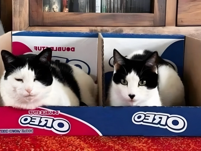 Potential Camera: iPhone Where to Buy: Amazon, Walmart, Apple Store. Price range: $500–1,200* The uploader waited patiently to capture this shot. He placed two Oreo boxes—one Double-Stuf, one Regular—side by side, and the cats did the rest.
