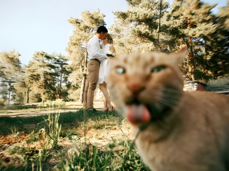 Some couples love to show affection on camera, but this cat clearly disapproves. Maybe the cat is annoyed that her space is being invaded. Cats crave attention, and these photobombing felines will do anything to get it. They turn perfect photos into hilarious disasters, whether it is a family portrait, a selfie, or a playful tussle.