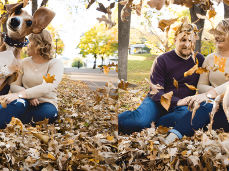 When this couple got engaged, their little Wiener dog photobombed the shoot in style. He wanted to be the star, even though he was supposed to be in the background. Maybe he was adding leaves for artistic flair. Either way, he stole the spotlight.