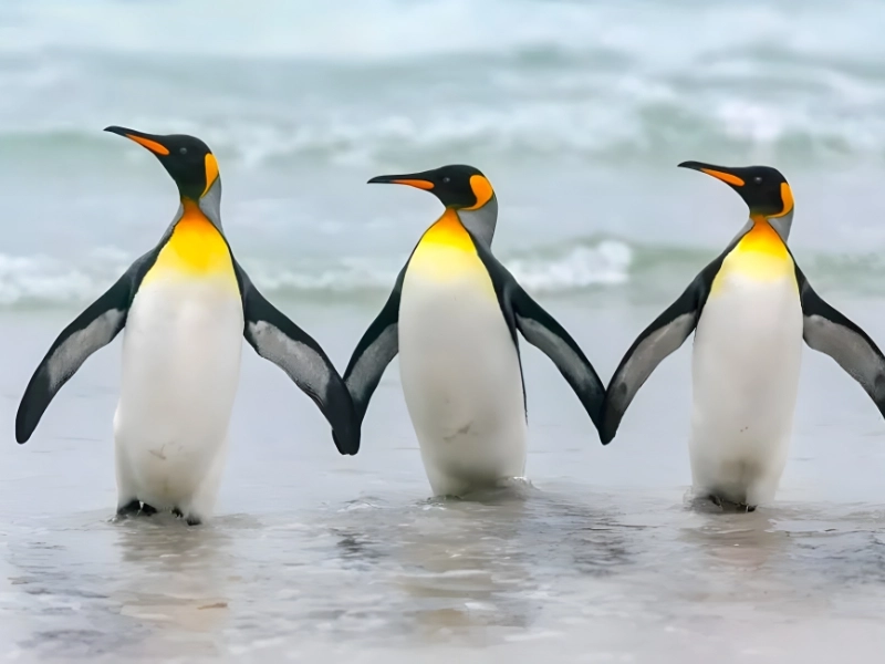 This sweet shot shows three King Penguins strolling along the beach, holding each other’s wings. It was selected for the 2023 Comedy Wildlife collection, highlighting parallels between animal and human relationships.