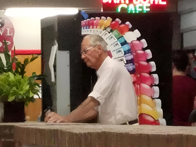 Store freezers double as creative ad stages. They are playful backdrops for candid photos that blend humor with product placement. One memorable image shows an elderly man posing as a tribal chief with a bottle made headdress.
