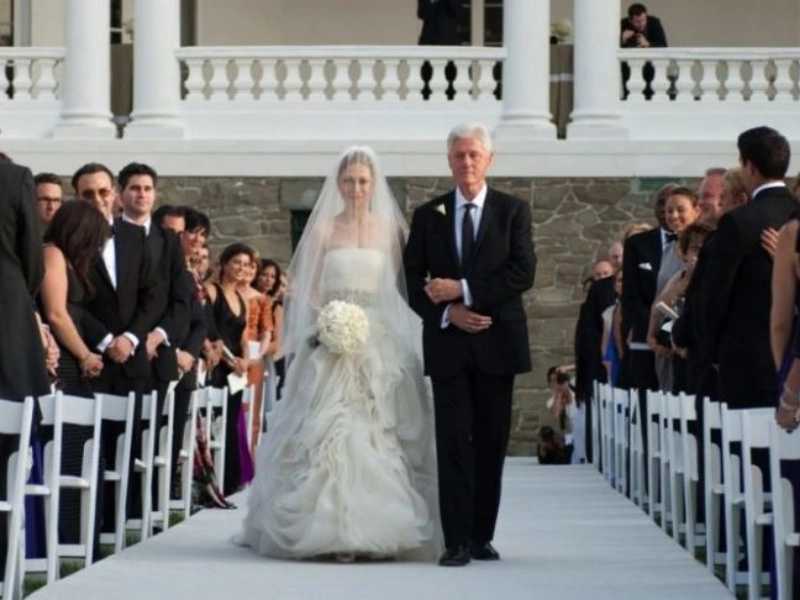 Chelsea Clinton made a statement by wearing two Vera Wang dresses. The first featured classic lace, while the second offered a modern twist with intricate detail. Both reflected her poise and love of timeless elegance.