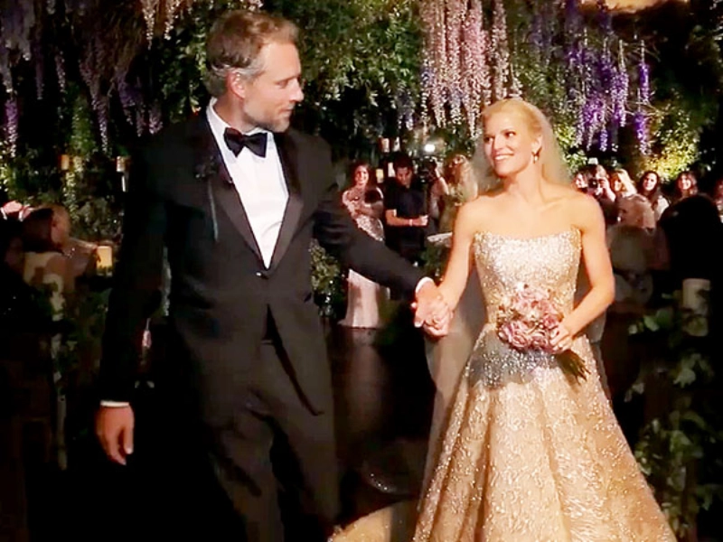 Jessica Simpson also chose a stunning marengo-colored Vera Wang gown, showcasing her taste for refined elegance. The delicate design and premium fabric made her a vision of beauty, reinforcing her timeless style.